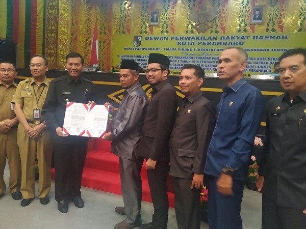 Persetujuan bersama atas ranpeda sudah ditandangani bersama Ketua DPRD Kota Pekanbaru Hamdani, Senin (27/01/2020). Walikota Pekanbaru Dr Firdaus MT menilai ranperda ini merupakan kebijakan yang stategis. Kebijakan ini mendukung penyertaan modal untuk PT Sarana Pembangunan Pekanbaru (SPP) untuk mengelola Kawasab Industri Tenayan (KIT).